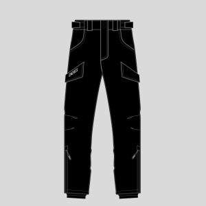 The upper part features an integrated belt with Velcro closure, ensuring quick and secure fastening. The ergonomic cut at the knees guarantees optimal freedom of movement, improving fit and preventing the fabric from hindering movement during physical activity. The side zipper extending from the bottom of the leg to the knee makes the pants easy to put on and take off, making them practical and functional even in dynamic situations.